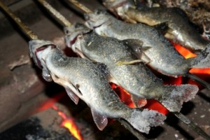 鮎は、夏の川魚を代表する魚。いったん海に出た稚魚は五月ころ産卵のために遡上を初める。産卵した鮎の多くは死んでしまう。それゆえ鮎は、年魚ともいわれる。句の奥三河、鮎の味も格別なら、山の端に出た月も見事なのだろう。『鯉素』(kinuta)