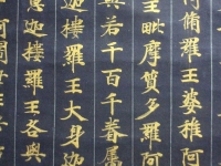 「一切経」は5000巻にも及ぶ経典で、中でも紺色の紙に金の文字で書かれたものが「金泥一切経」である。仏教全般を網羅した大変ありがたいお経ということになる。